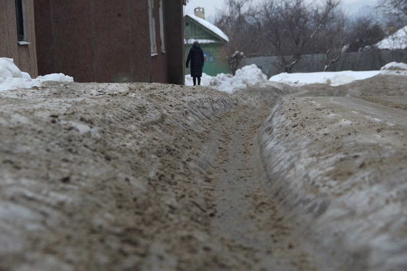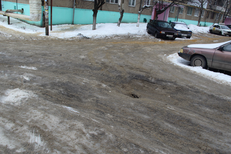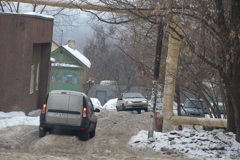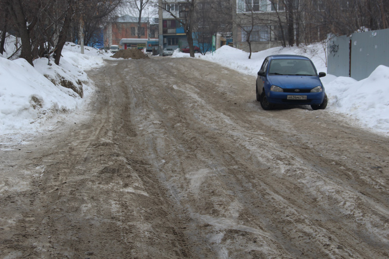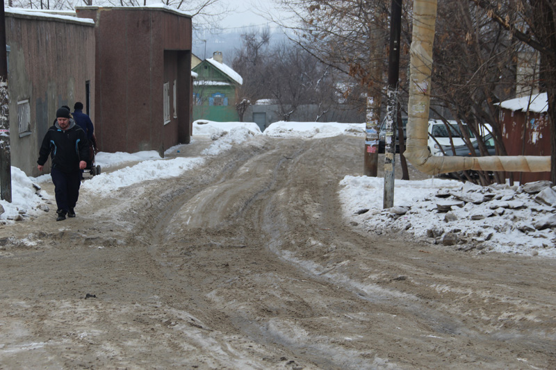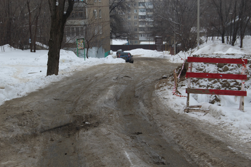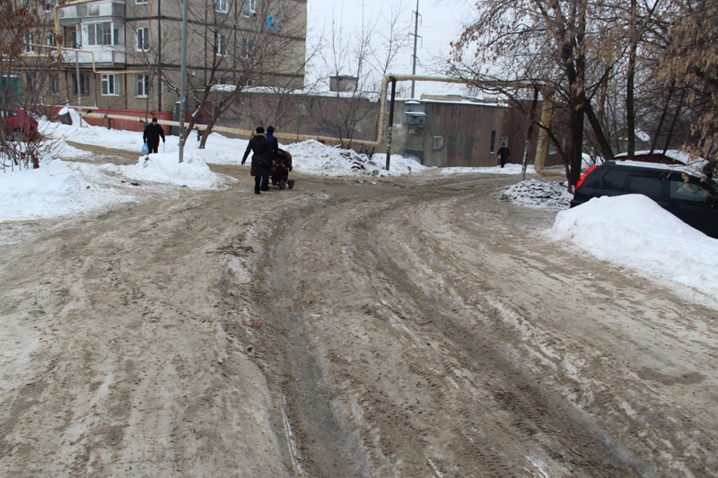 Последовавший снегопад и наступившие морозы превратили дорогу в ледяную гору, которую ежедневно вынуждены штурмовать местные жители. Заезд со стороны улицы Безымянной осуществляется по глубокой ледяной колее, и если встречаются встречные автомобили, разъехаться они просто не могут, а часто идущая на подъем машина и вовсе застревает. Автомобили с низким клиренсом фактически скребут днищем по ледяным буграм, оставляя на них многочисленные царапины. Со стороны улицы Навашина проезд преграждает котлован на месте коммунальной аварии, вот уже скоро месяц, как его не устраняют, и водители вынуждены объезжать препятствие по тротуарам, рискуя соскользнуть в глубокую яму. Но если автовладельцы рискуют повредить свои транспортные средства, то пешеходам приходиться и вовсе несладко. Обледеневшая дорога и пешеходные зоны заставляют скользить и передвигаться приставным шагом, а пересечение глубокой ледяной колеи и вовсе становится тяжким испытанием, особенно для пенсионеров и родителей с малолетними детьми.