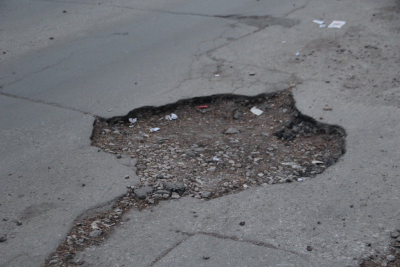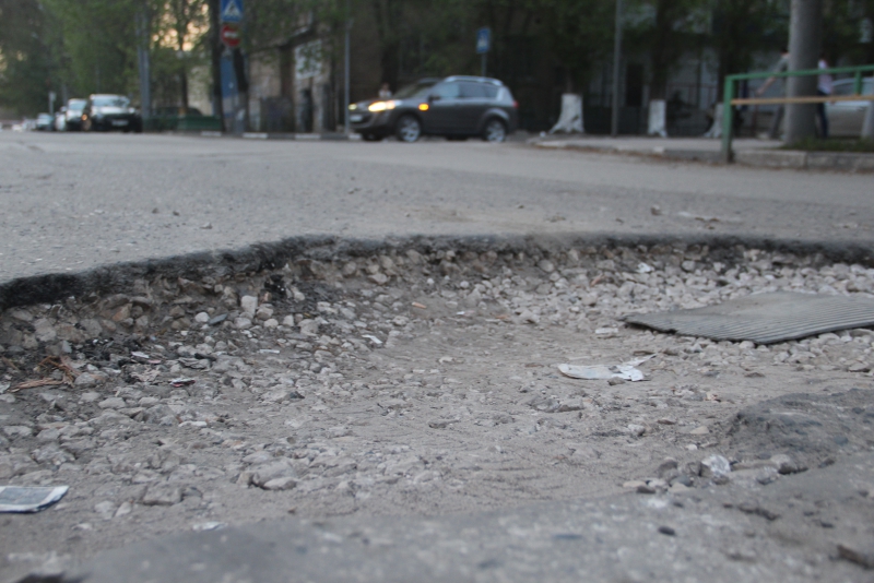 Их ширина доходит до 2,6 метров, а глубина переваливает за 20 сантиметров. Это в 17 и в 4 раза, соответственно, превышает допустимые ГОСТом дефекты. А если считать по допустимой площади дефекта, яма превышает ее чуть ли не в 40(!) раз.