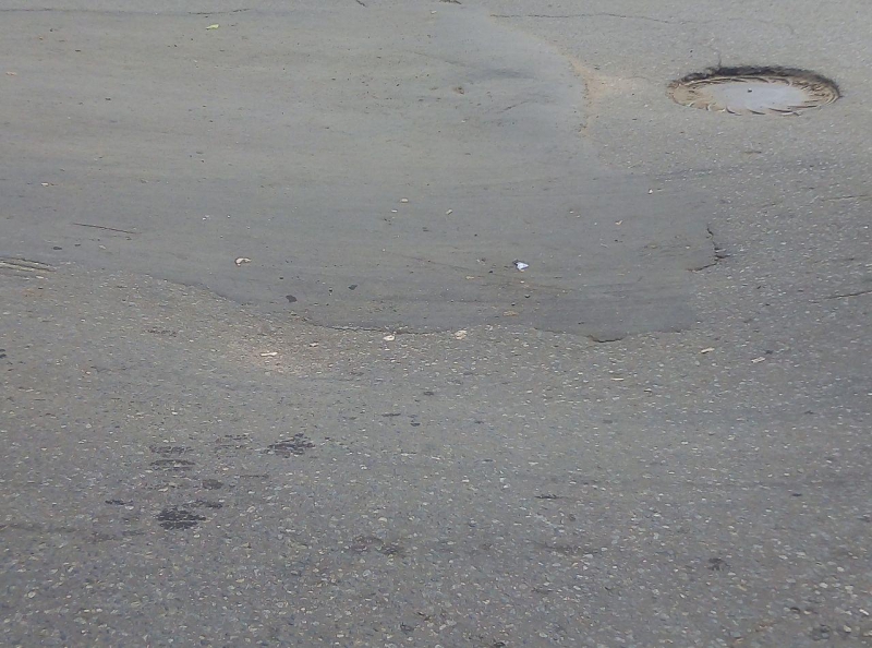 Снова образовалась на своем традиционном месте глубокая просадка на пересечении с малой дорогой проспекта 50 лет Октября. Устранить ее пытались неоднократно, но даже полная замена покрытия не исправила ситуацию.