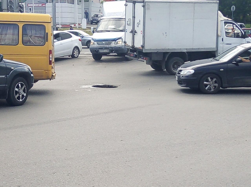 Кроме просадки движению на перекрестке мешает соседствующий с ней просевший смотровой колодец. Водители вынуждены активно маневрировать, но на забитой машинами дороге объехать препятствия не всегда получается.