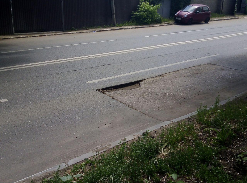 Глубокая просадка угрожает безопасности движения на улице Технической