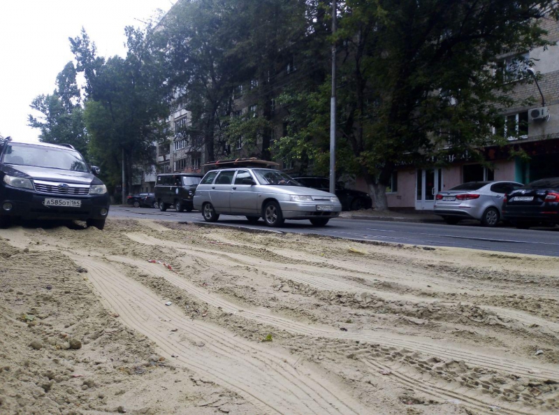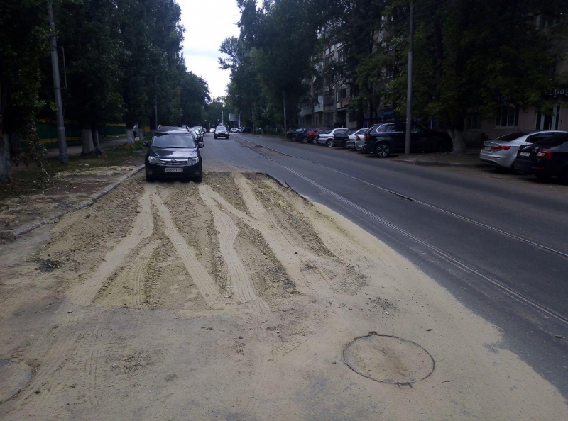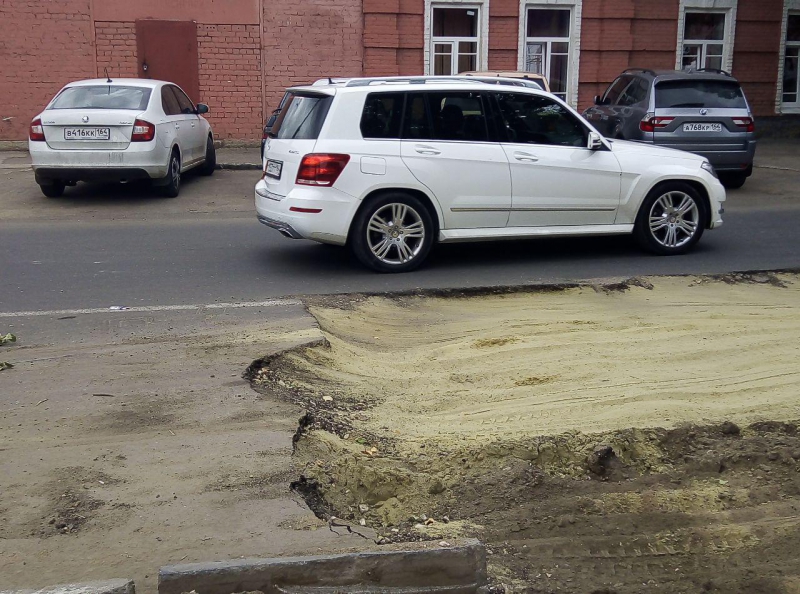 В Саратове на участке улицы Степана Разина, от Большой Горной до Кутякова, движение затрудняют два коммунальных раскопа. Котлованы отсыпали песком, который значительно просел, из-за чего образовался существенный перепад с уровнем дорожного покрытия.
