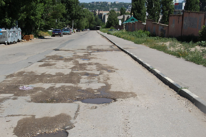 Еще один отремонтированный участок на этой улице встретится на пересечении с улицей им. генерала Захарова. Но перед ним целая «заградительная» полоса ям и колдобин.