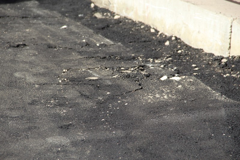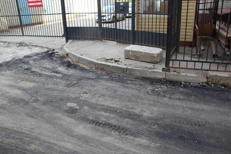В ходе инспекционного выезда сотрудниками «Дорожного контроля» были выявлены признаки нарушений при выполнении ремонтных работ. В частности, при въезде во двор со стороны улицы Серова была произведена укладка выравнивающего слоя асфальта поверх старого покрытия. В некоторых местах уложенный слой разорвался, и под ним можно было заметить пыль. Выравнивающий слой служит основанием для верхнего слоя, он должен хорошо примыкать к нижележащей поверхности, быть ровным и без изъянов.