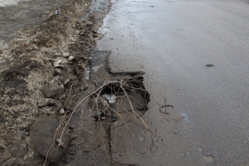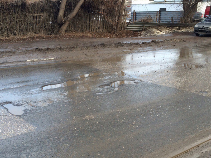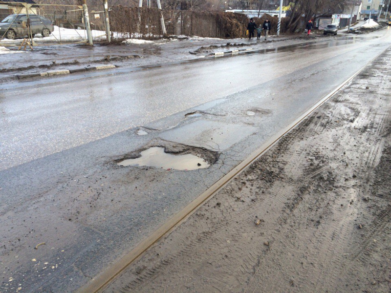 О том, что на дороге, находящейся на гарантийном обслуживании фирмы-подрядчика, появились ямы, нарушающие требования ГОСТа, сообщил в «Дорожный контроль» местный житель Владимир. Он рассказал, что у дома №19 по улице Азина на дороге образовалось несколько глубоких выбоин, занявших всю ширину проезжей части. В результате инспекции «Дорожного контроля» мы вынуждены констатировать, что опасный участок появился не только у дома №19, разрушение дорожного полотна начинается от поворота со стороны проспекта Энтузиастов. Особенно много выбоин на улице Азина образовалось вдоль трамвайных рельсов. Также провал появился рядом с остановкой «20-й квартал». При этом подрядчик, согласно контракту, несет в течение года гарантийные обязательства по содержанию дороги и обязан устранять выявленные дефекты.