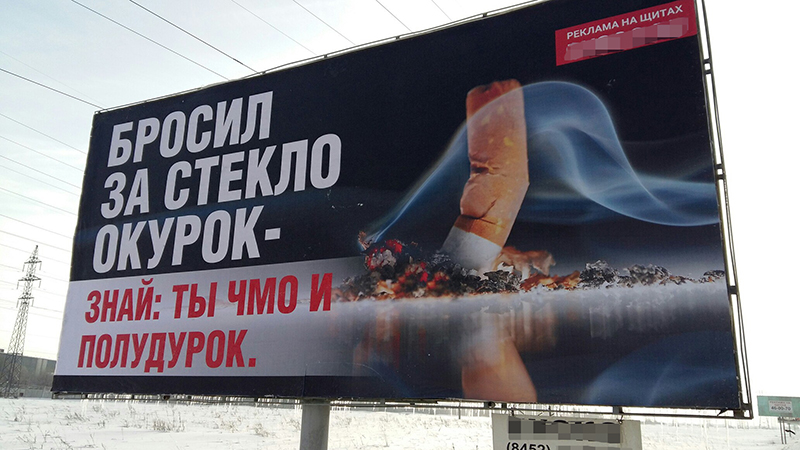 Напомним, в Балакове несколько дней назад разместили билборды с надписью «Бросил за стекло окурок – знай: ты чмо и полудурок». В социальных сетях горожане стали активно обсуждать содержание соцрекламы. Некоторые выступили в поддержку авторов, а другие сочли это слишком жестким и оскорбительным.