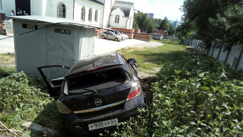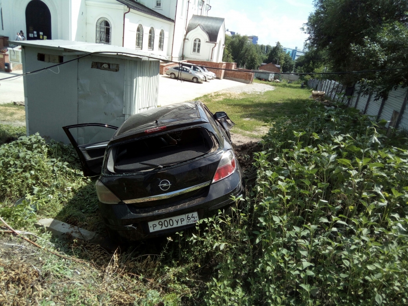 Сегодня днем в Саратове водитель на «Опеле» не справился с управлением, снес забор и влетел на территорию Храма святых апостолов Петра и Павла на улице Международной.