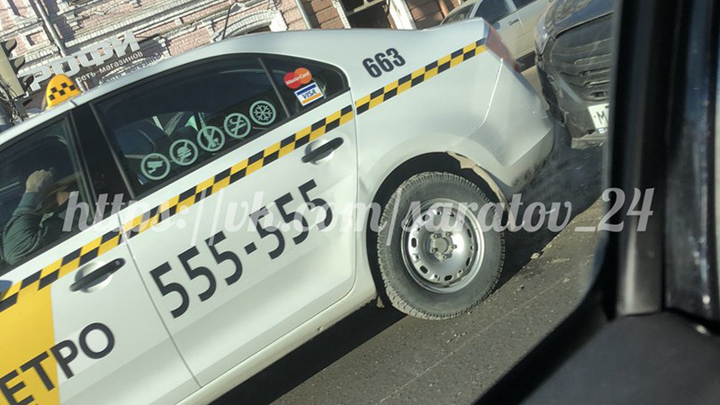 Сегодня в центре Саратова автомобиль с «красивыми» номерами столкнулся с машиной такси. Об этом в соцсетях в группе «Саратов онлайн» написали очевидцы.