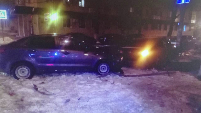 По предварительным сведениям, на перекрестке улиц Мичурина и Вольская 24-летний водитель автомобиля «Киа Рио» выехал на запрещающий сигнал светофора. Он столкнулся с автомашиной «Фольксваген Пассат» под управлением 22-летнего шофера. Далее «Фольксваген» вынесло на тротуар, где транспортное средство снесло дорожный знак «Пешеходный переход».