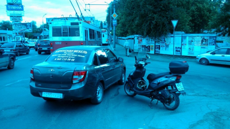 По его словам, около 9.00 он ехал на своем скутере по улице Чернышевского по крайней правой полосе. На повороте в речпорт в него неожиданно врезался автомобилист на «Ладе Гранте» с рекламой корпусной мебели.