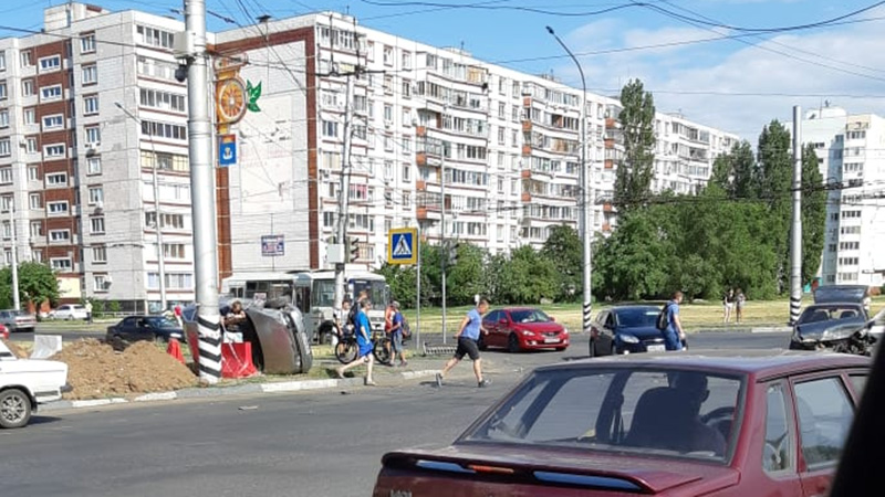 Сегодня в Балакове Саратовской области произошло столкновение двух легковых автомобилей, один из которых опрокинулся
