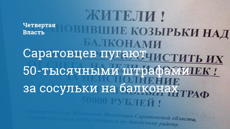 При этом на объявлении с требованием «срочно убрать снег, наледь и сосульки» стоит подпись «Государственная жилищная инспекция Саратовской области, территориальный отдел контроля по Заводскому району». Однако в пресс-службе ведомства «Четвертой Власти» пояснили, что к подобному не имеют никакого отношения. Более того, такого структурного подразделения в ГЖИ даже не существует.