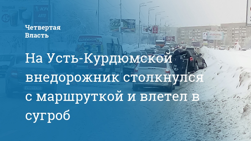 На Усть-Курдюмской внедорожник столкнулся с маршруткой и влетел в сугроб