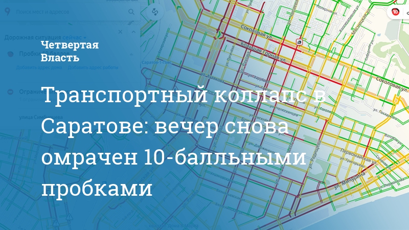 Транспортный коллапс в Саратове: вечер снова омрачен 10-балльными пробками