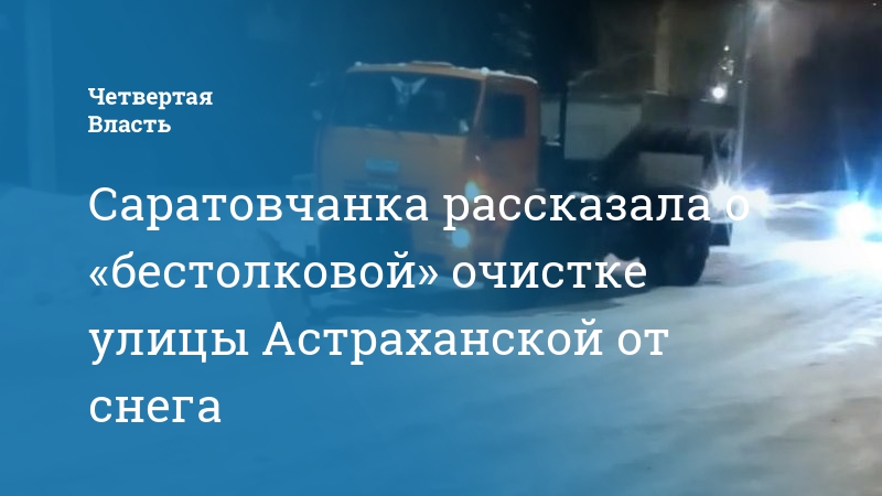 Женщина прислала в редакцию видеозапись уборки снега с проезжей части на улице Астраханской. По ее словам, ролик был снят вчера около 22.00 в районе Детского парка.