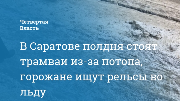 В Саратове полдня стоят трамваи из-за потопа, горожане ищут рельсы во льду