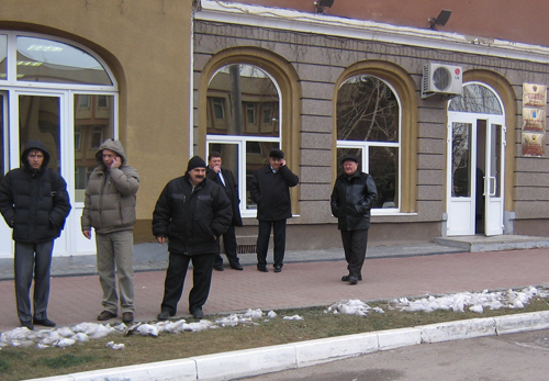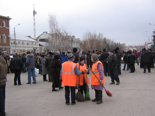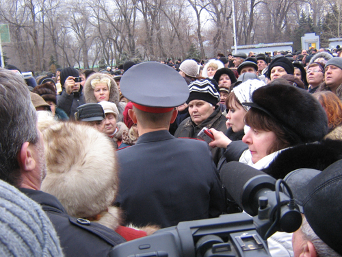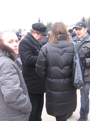 За митингом наблюдают министр по делам территориальных образований Павел Беликов, председатель комитета общественных отношений и национальной политики правительства Сергей Авезниязов, областной депутат Сергей Богомолов и адвокаты Лысенко.