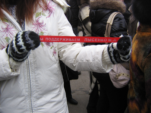 Перед началом акции к организаторам подошли милиционеры, сообщившие, что прокуратура признала их митинг неправомерным, так как нашла нарушения при подаче документов на его проведение. Однако, разгонять собравшихся стражи порядка не стали, не захотев провоцировать конфликт. Вместо этого начальник общественной безопасности предложил одной из активисток - помощнице Лысенко Таисии Морорец - проехать в отделение и побеседовать, а акцию провести еще раз, но уже на законных основаниях. Она согласилась, собравшиеся потихоньку расходятся.
