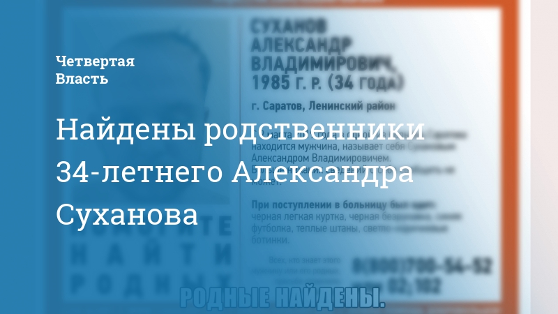 Напомним, мужчина с 9 марта находился в одной из больниц в Ленинском районе. О нем было известно только то, что он называл себя Сухановым Александром Владимировичем.