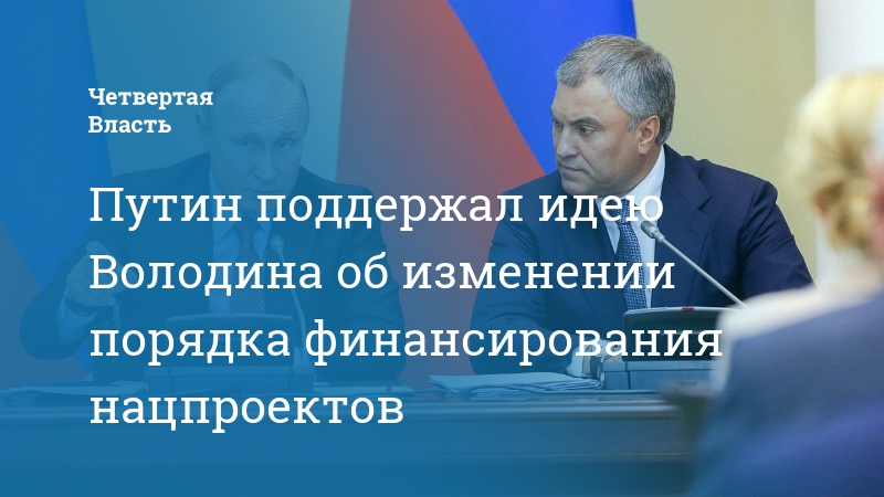 Путин поддержал идею Володина об изменении порядка финансирования нацпроектов