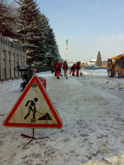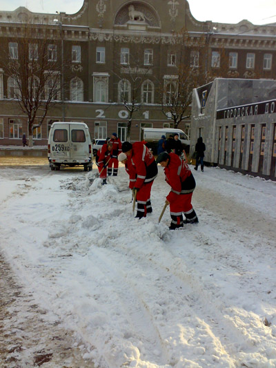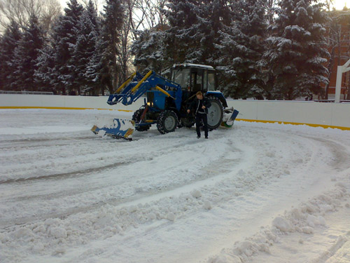 Вяло машут лопатами и рабочие, взявшиеся за инструмент лишь когда корреспондент «Четвертой власти» направил на них объектив фотоаппарата. Все это происходило под окнами мэрии. Часть коммунальщиков с одним трактор и вовсе заняты на Театральной площади не расчисткой снега, а подготовкой катка.