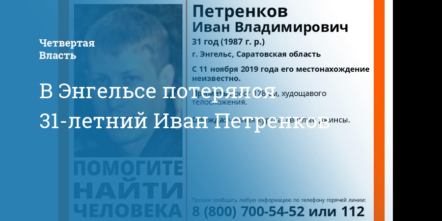 В Энгельсе Саратовской области без вести пропал 31-летний Иван Петренков. Об этом сообщает поисковый отряд «Лиза Алерт».