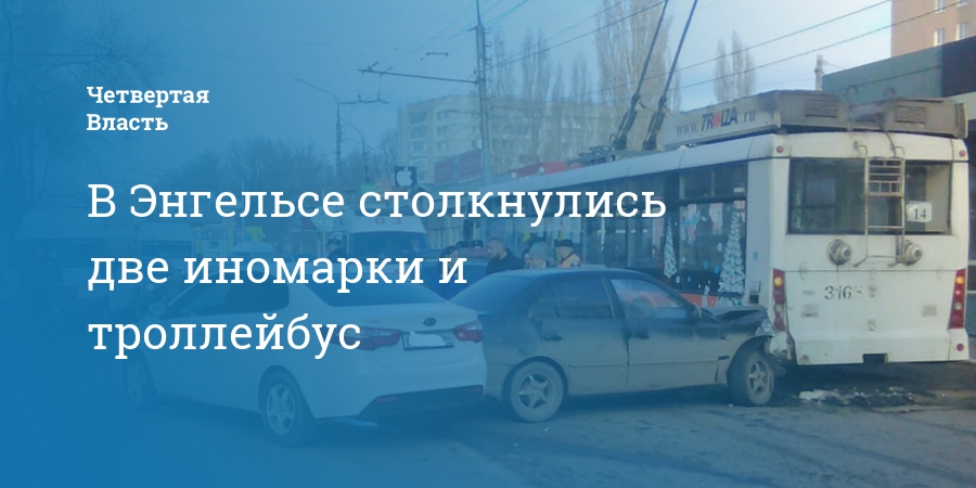 Сегодня, 12 декабря, в Энгельсе Саратовской области произошло столкновение двух легковушек и троллейбуса. Как сообщили в региональном управлении ГИБДД, в результате ДТП пострадал один человек.
