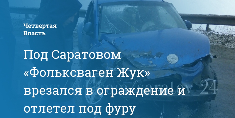 Под Саратовом «Фольксваген Жук» врезался в ограждение и отлетел под фуру