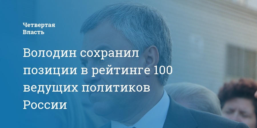 Володин сохранил позиции в рейтинге 100 ведущих политиков России