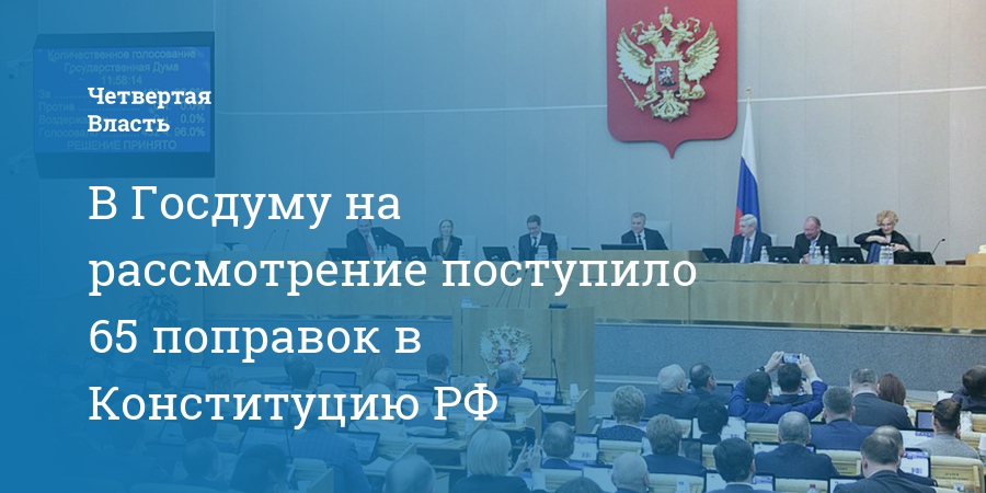 В Госдуму на рассмотрение поступило 65 поправок в Конституцию РФ