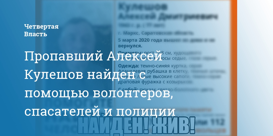 Пропавший Алексей Кулешов найден с помощью волонтеров, спасателей и полиции