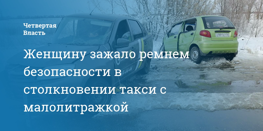Женщину зажало ремнем безопасности в столкновении такси с малолитражкой