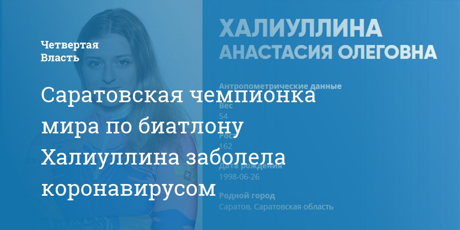 Проживающая в Саратове 21-летняя Анастастия Халиуллина в январе стала чемпионкой мира по биатлону среди юниоров. В субботу ее мать Екатерина Халиуллина, первый тренер чемпиона мира Александра Логинова, сообщила РИА Новости, что она и дочь сдали первый тест на коронавирус, и он дал отрицательный результат. Драчев эту информацию подтвердил, уточнив, что Халиуллины находятся под присмотром врачей и сдадут второй тест на коронавирусную инфекцию.