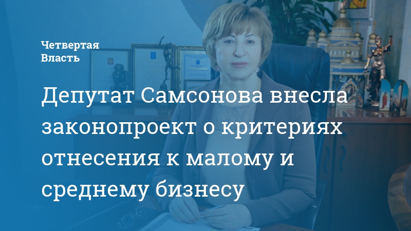 Депутат Самсонова внесла законопроект о критериях отнесения к малому и среднему бизнесу