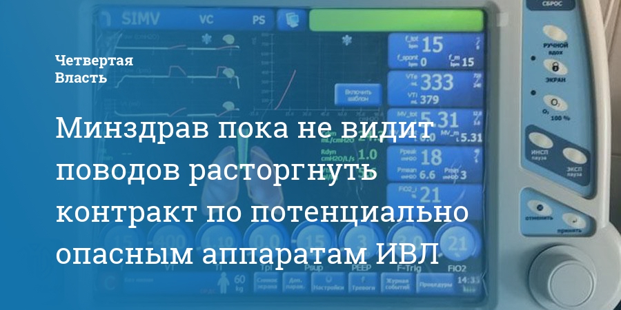 Минздрав пока не видит поводов расторгнуть контракт по потенциально опасным аппаратам ИВЛ