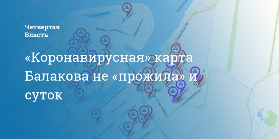 Вчера вечером карта Балакова, на которой указаны адреса проживания коронавирусных больных, перестала существовать. Таким образом, она не «прожила» и одного дня.