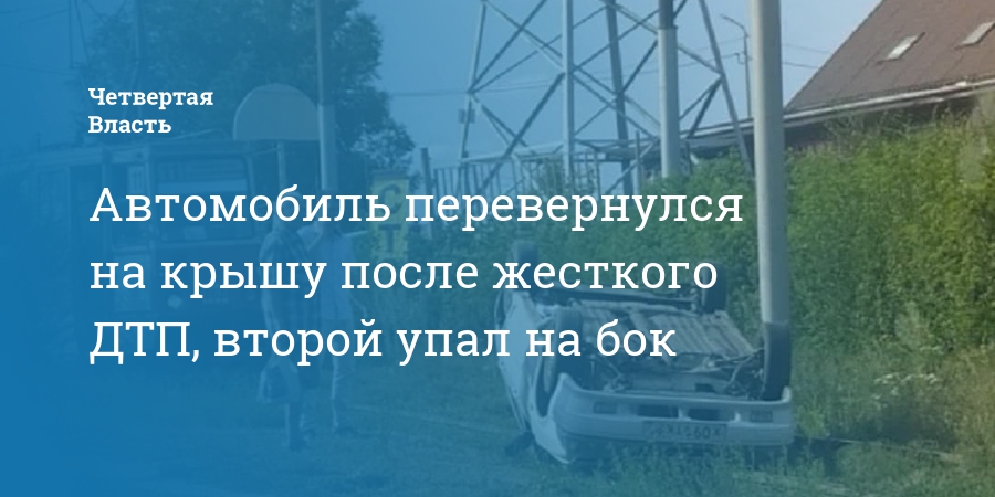 Автомобиль перевернулся на крышу после жесткого ДТП, второй упал на бок