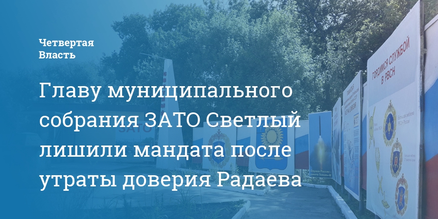 Главу муниципального собрания ЗАТО Светлый лишили мандата после утраты доверия Радаева