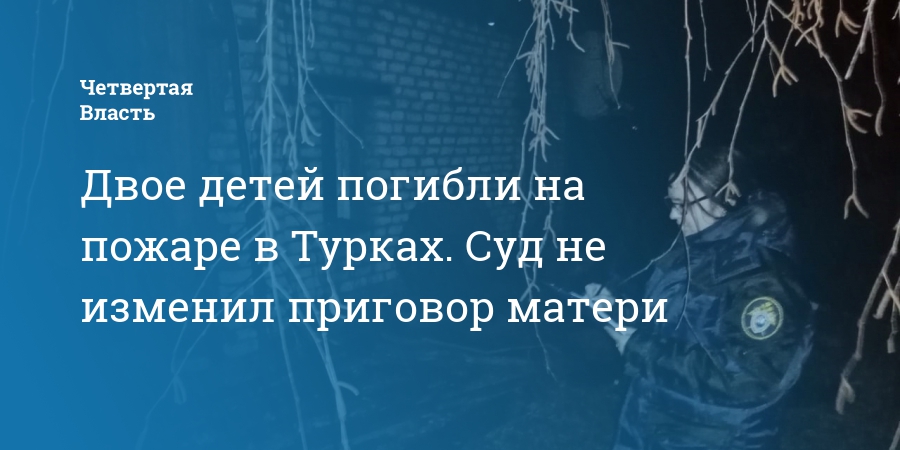 Двое детей погибли на пожаре в Турках. Суд не изменил приговор матери