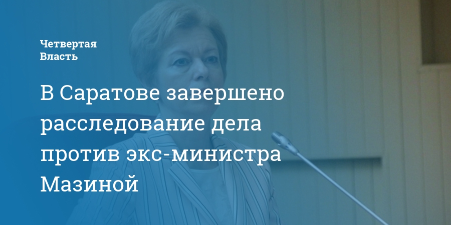 В Саратове завершено расследование уголовного дела против бывшего министра здравоохранения области Натальи Мазиной. Об этом рассказал «Четвертой Власти» адвокат Андрей Морозов.