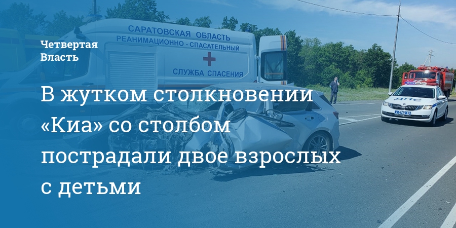 В жутком столкновении «Киа» со столбом пострадали двое взрослых с детьми