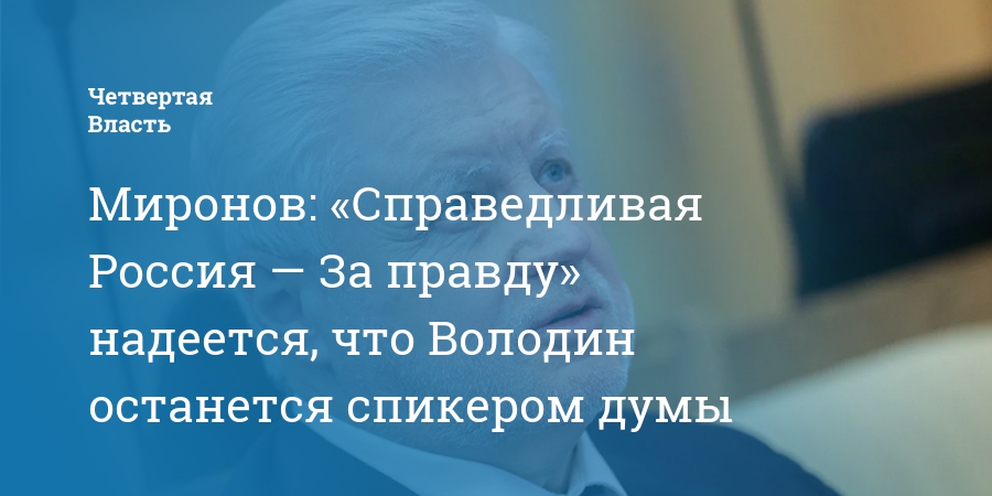 Миронов: «Справедливая Россия — За правду» надеется, что Володин останется спикером думы