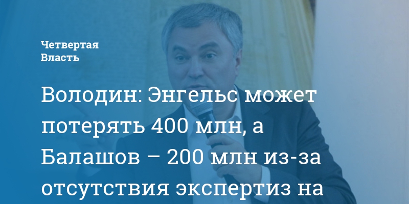 Володин: Энгельс может потерять 400 млн, а Балашов – 200 млн из-за отсутствия экспертиз на проекты