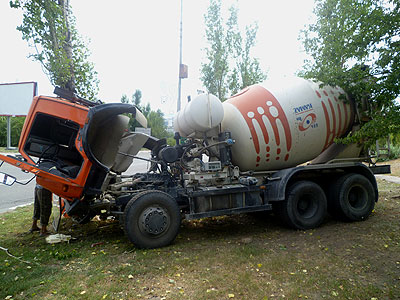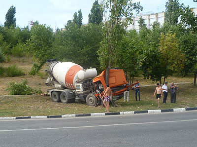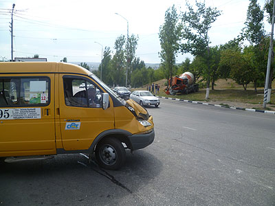 Припаркованный «КамАЗ» (бетономешалка), у которого, по всей видимости, отказали тормоза, начал скатываться вниз и врезался в пассажирскую «ГАЗель», ехавшую по маршруту №95.