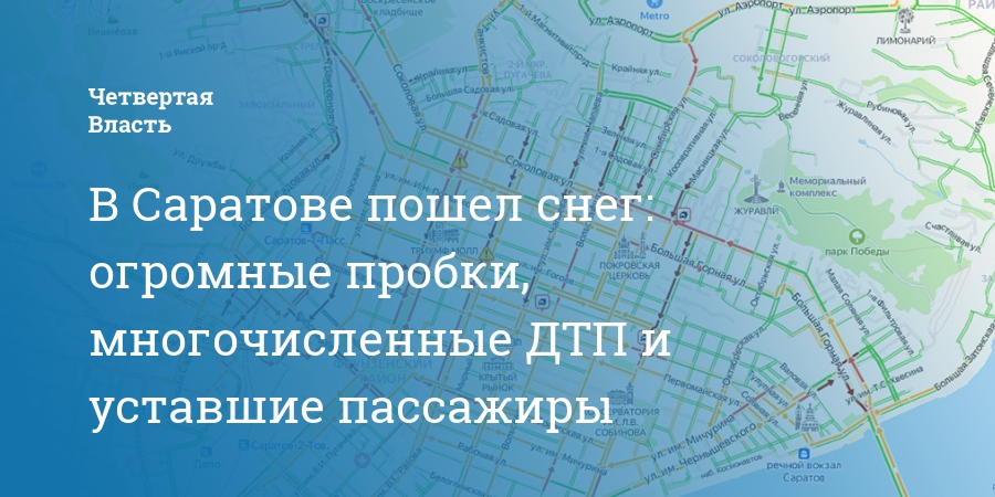 В Саратове пошел снег: огромные пробки, многочисленные ДТП и уставшие пассажиры