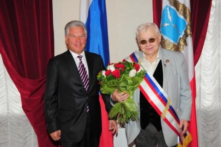 Губернатор вручил Олегу Табакову удостоверение и грамоту «Почетного гражданина Саратовской области».