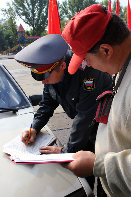 В 9.15 подъехали сотрудники полиции и показали оппозиционерам документ, в котором сообщалось, что пикет, проводимый партией, несанкционирован администрацией. За это нарушение на 1-ого секретаря заводского РК КПРФ Дмитрия Сорокина был составлен протокол об административном правонарушении. Коммунист не согласился с протоколом, однако он заявил, что если полицейские требуют покинуть место пикета, комунисты, как законопослушные граждане, согласны подчиниться требованиям правоохранительных органов.
