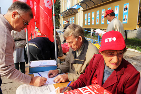 Сегодня в 8.30 начался пикет представителей КПРФ рядом со зданием администрации Заводского района города Саратова. В акции приняли участие около 10 человек.