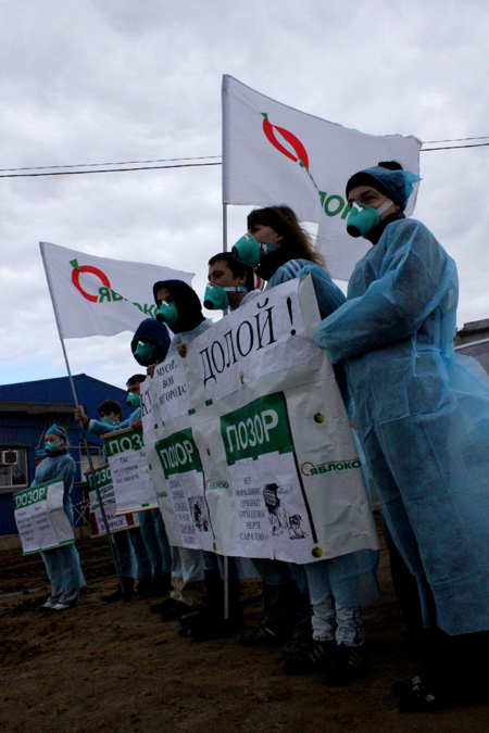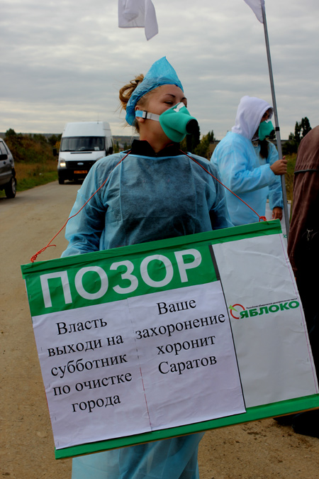 Сегодня в Ленинском районе Саратова, в промзоне на ВСО, у главного въезда в частное мусороперерабатывающее предприятие ООО «Экорос» прошел пикет партии «Яблоко».