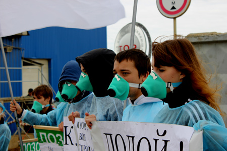 Перед воротами промышленной организации выстроилось 10 активистов, их главным лозунгом стала фраза: «Мусор вон из города».